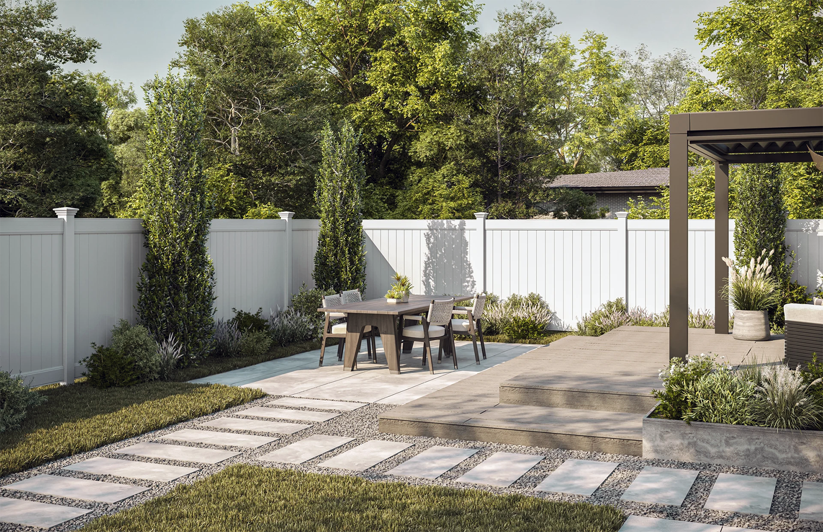 Create a peaceful, private space with long-lasting, low-maintenance vinyl fencing.